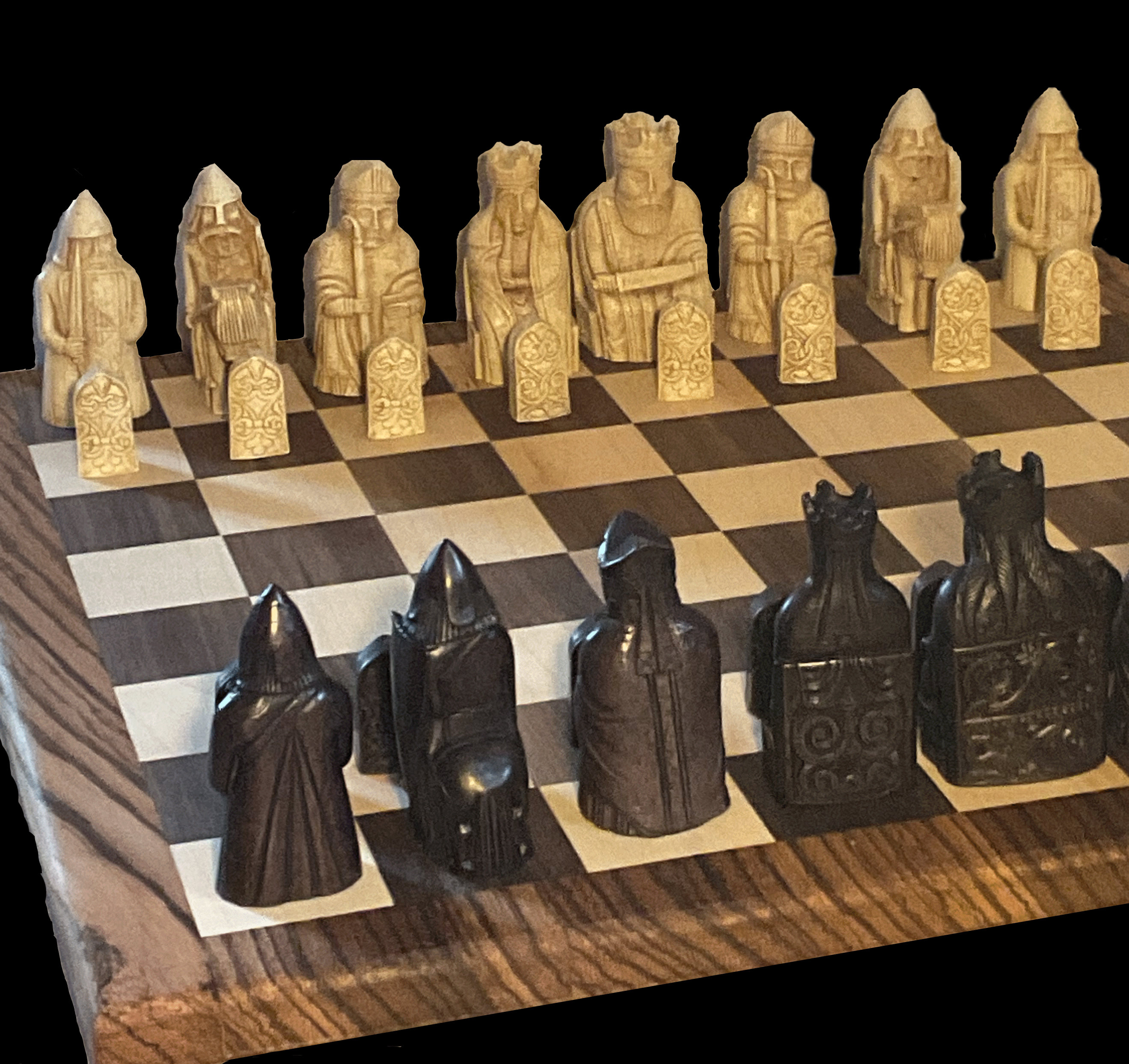 Isle of Lewis SchachFiguren in Original Fundgröße, mit massivem Spielbrett 54 cm x 54 cm Vollholz, keine Intarsien Feldgröße 60 x 60 Walnuss, Mispel, Rand Eiche 490,00 € |