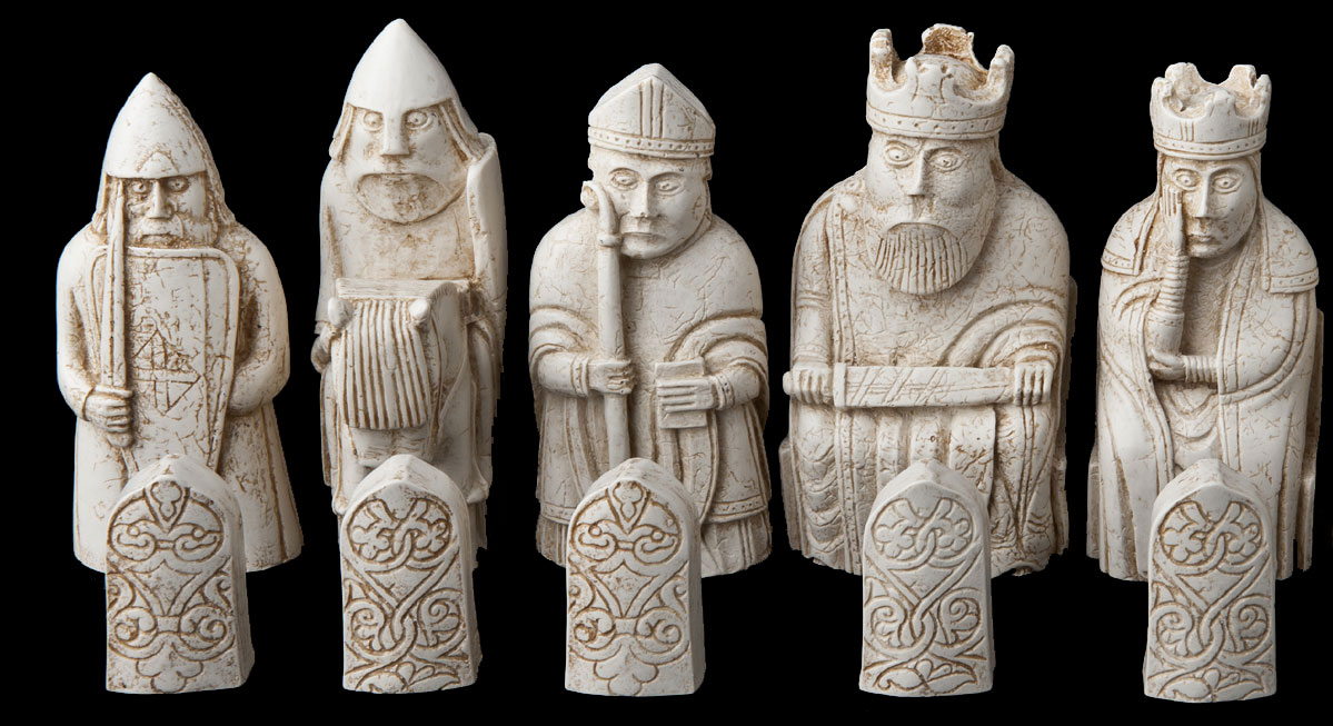 Spielfiguren aus dem Isle of Lewis-FundKönig (weiss/schwarz): 12,00 € Königin: 11,00 € Läufer: 8,00 € Springer: 12,00 € Turm: 11,00 € Bauer: 5,00 € |